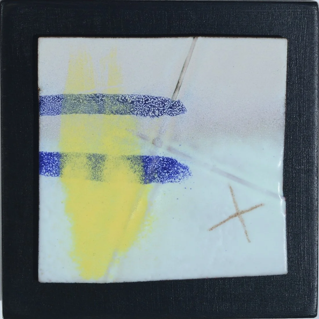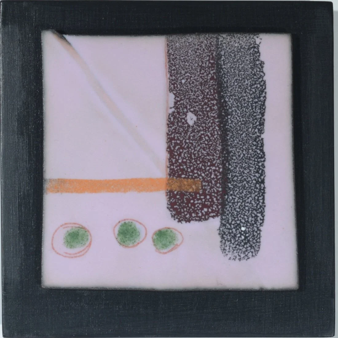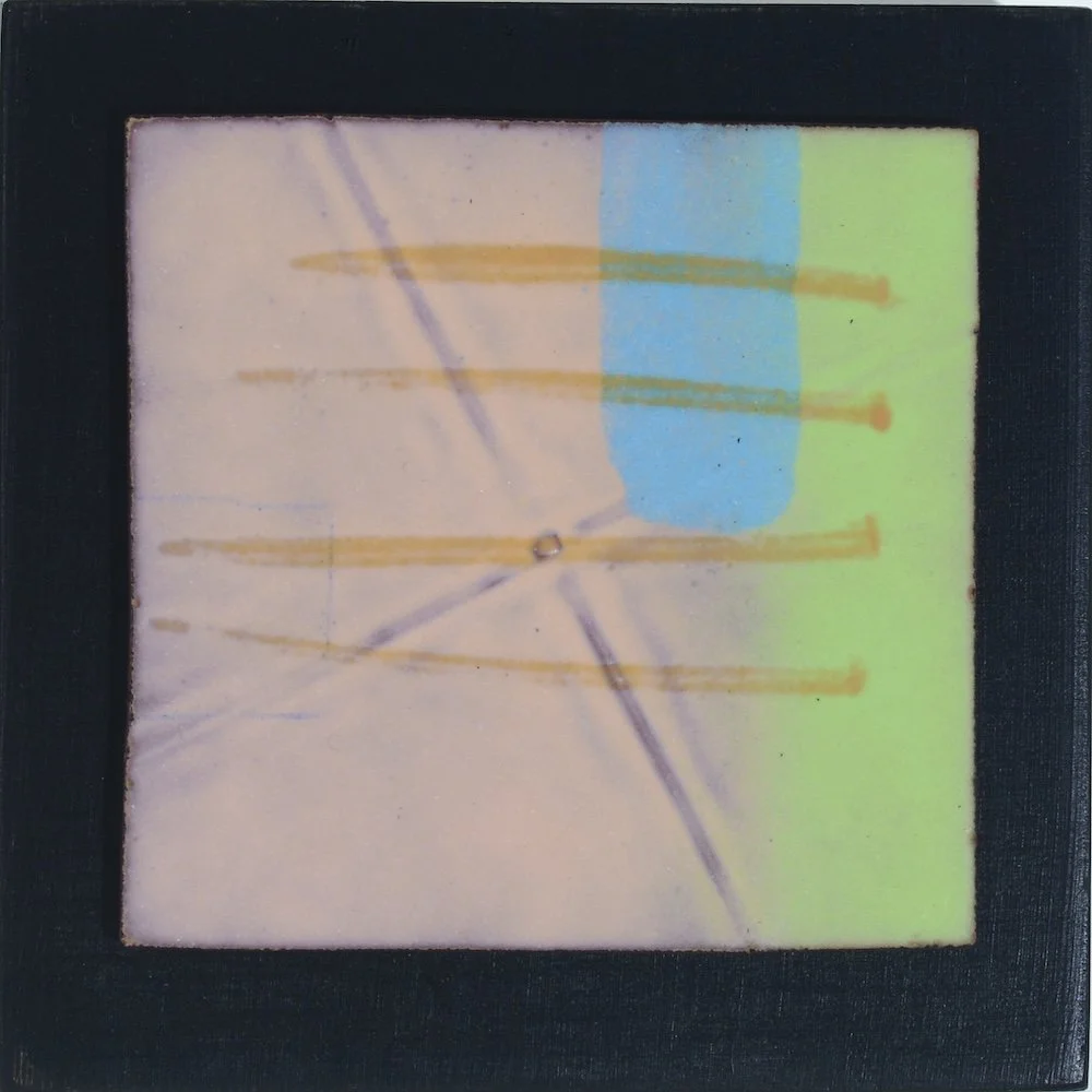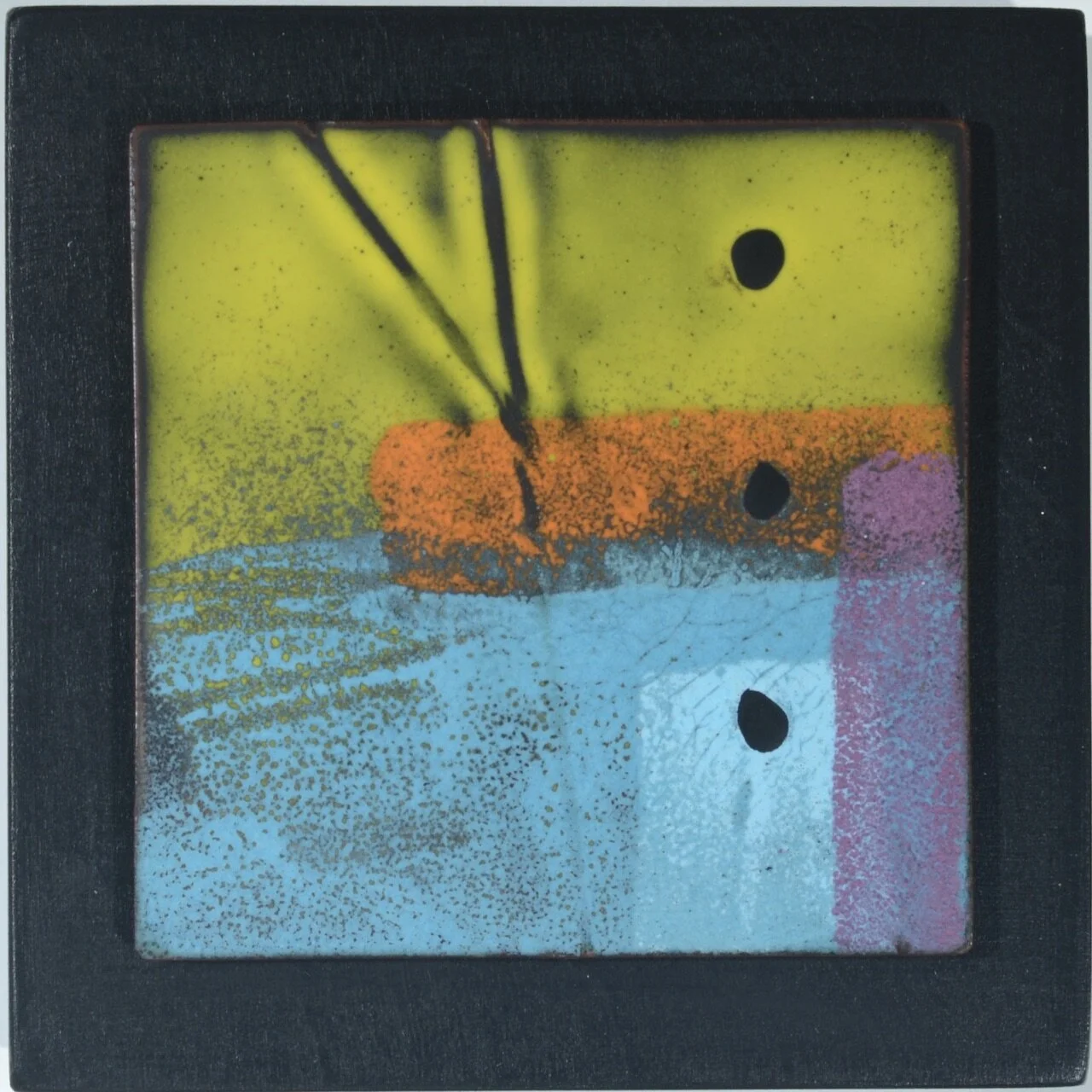 From the New Normal series of paintings I made in response to the shift in everyday routines and focus with the arrival of pandemic sensibilities. I chose colors from my palette of new and vintage enamels that would play off one another in contrast and compatibility.